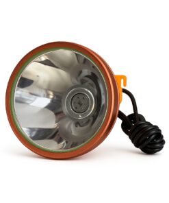 Linterna minera de alta potencia con luz LED roja, especialmente diseñada para uso nocturno en exteriores donde se requiere mantener la visión nocturna sin deslumbrar. Este foco combina una potencia de 1200W con un haz de luz enfocado que alcanza más de 500 metros. Ideal para observación nocturna, pesca, caza, senderismo, ciclismo nocturno y uso táctico. Su batería recargable de larga duración permite hasta 12 horas en modo fuerte y más de 60 horas en modo ahorro. También funciona como power bank gracias a su salida USB. Incluye cargador, bolso de transporte y cintillo para usar como linterna frontal.