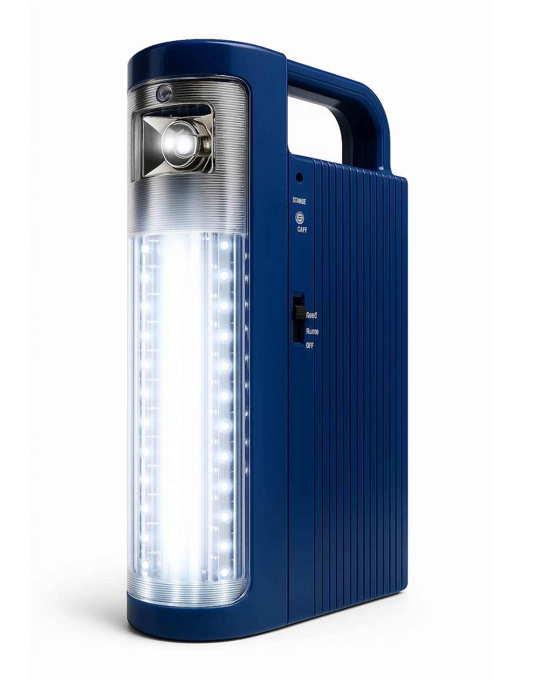 Linterna recargable de emergencia de la marca EUROSUN, diseñada para proporcionar iluminación confiable durante cortes de luz o situaciones de emergencia. Equipada con 20 LED de alta potencia y un tubo fluorescente de 11W, esta linterna ofrece hasta 15 horas de funcionamiento con luz LED y 4.5 horas con el tubo. Cuenta con una batería sellada de plomo-ácido recargable de 6V 4.5AH, con funciones de protección contra sobrecarga y descarga profunda. Ideal para el hogar, oficinas o lugares donde se requiera una fuente de luz autónoma y portátil. Incluye mango ergonómico, luz frontal tipo linterna, selector de intensidad y soporte para montaje en pared.