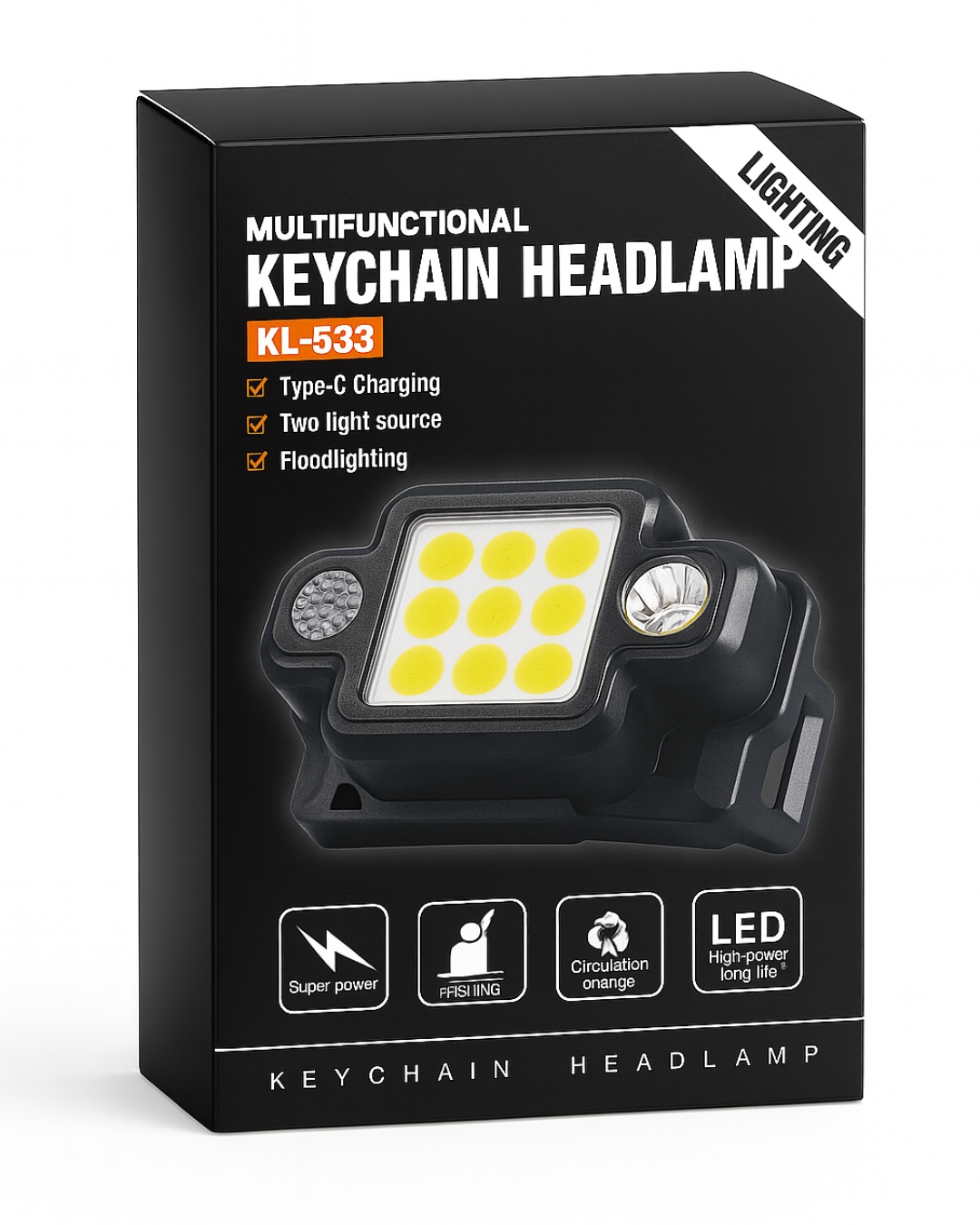 Lámpara frontal de tamaño compacto, recargable por USB tipo C, diseñada para ofrecer iluminación eficiente en cualquier situación de emergencia, trabajo, pesca, camping o reparación. Incluye dos fuentes de luz LED para mayor cobertura y visibilidad, y puede fijarse fácilmente con su soporte magnético o colocarse en un trípode. Gracias a su diseño portátil tipo llavero y su alta potencia, es ideal para actividades al aire libre o para tener siempre a mano en el auto, mochila o caja de herramientas.