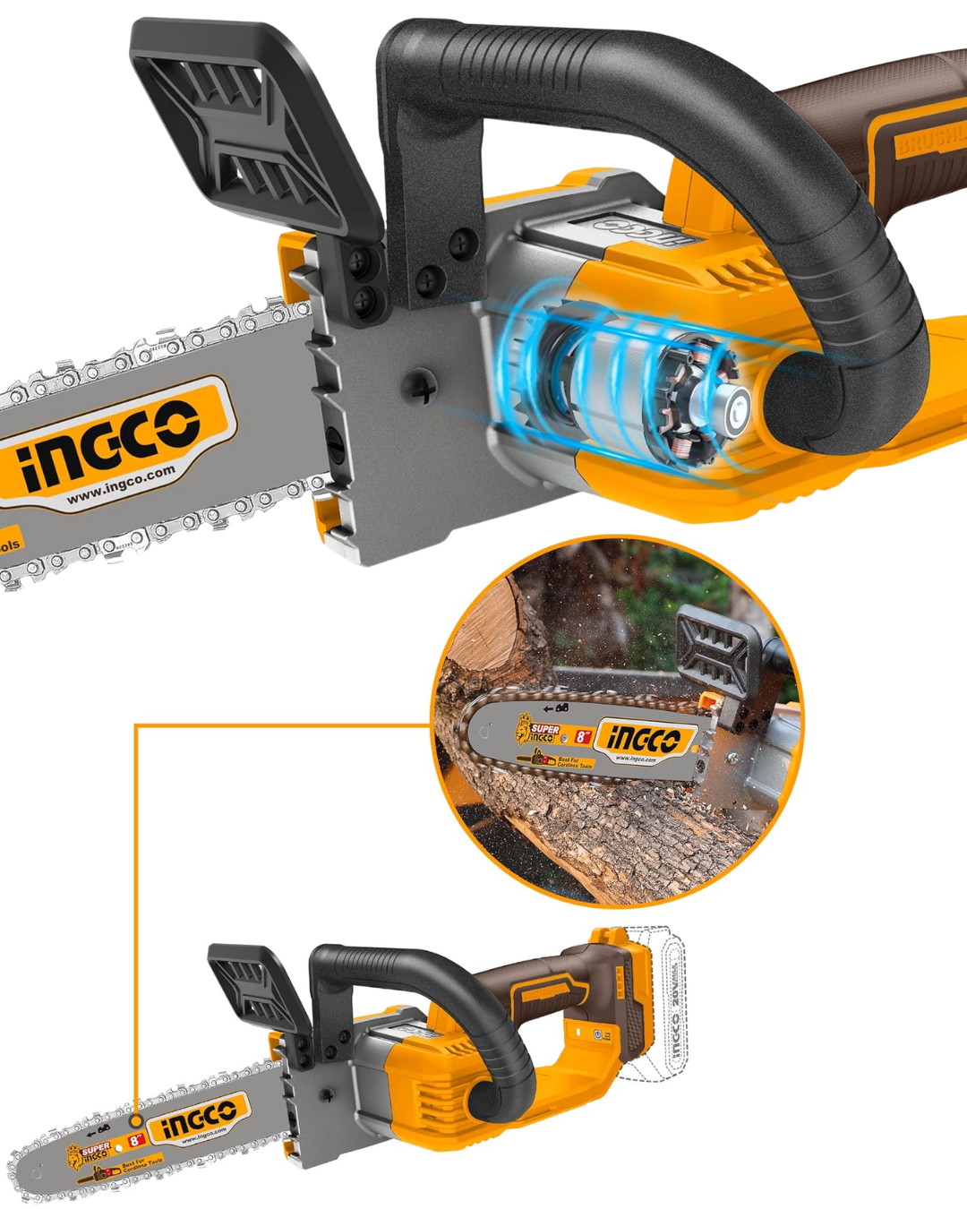 Motosierra Inalámbrica 8″ + Batería 2AH + Cargador INGCO CGSLI20851