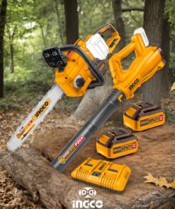 Este combo de herramientas inalámbricas es la solución ideal para quienes buscan potencia y movilidad en el mantenimiento de jardines, fincas y áreas verdes. La motosierra de 16″ ofrece un rendimiento eficiente con su motor sin carbones, velocidad de cadena de 14,5 m/s y lubricación automática, garantizando cortes rápidos y precisos. Además, la sopladora a batería proporciona una gran capacidad de flujo de aire y velocidad de hasta 115 km/h, facilitando la limpieza de hojas y residuos. Ambas herramientas funcionan con baterías de 20V y cuentan con un cargador de doble puerto para mayor comodidad.