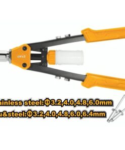 Herramienta robusta y eficiente diseñada para tareas de remachado en aplicaciones industriales. Este modelo se destaca por su construcción duradera y su diseño tipo tijera, que proporciona un manejo cómodo y una mayor fuerza de compresión. Esta remachadora está equipada con un mango ergonómico para un uso prolongado sin fatiga y es ideal para trabajar con remaches de diversos tamaños. Su estructura de acero de alta calidad garantiza una larga vida útil y un rendimiento consistente en ambientes exigentes.