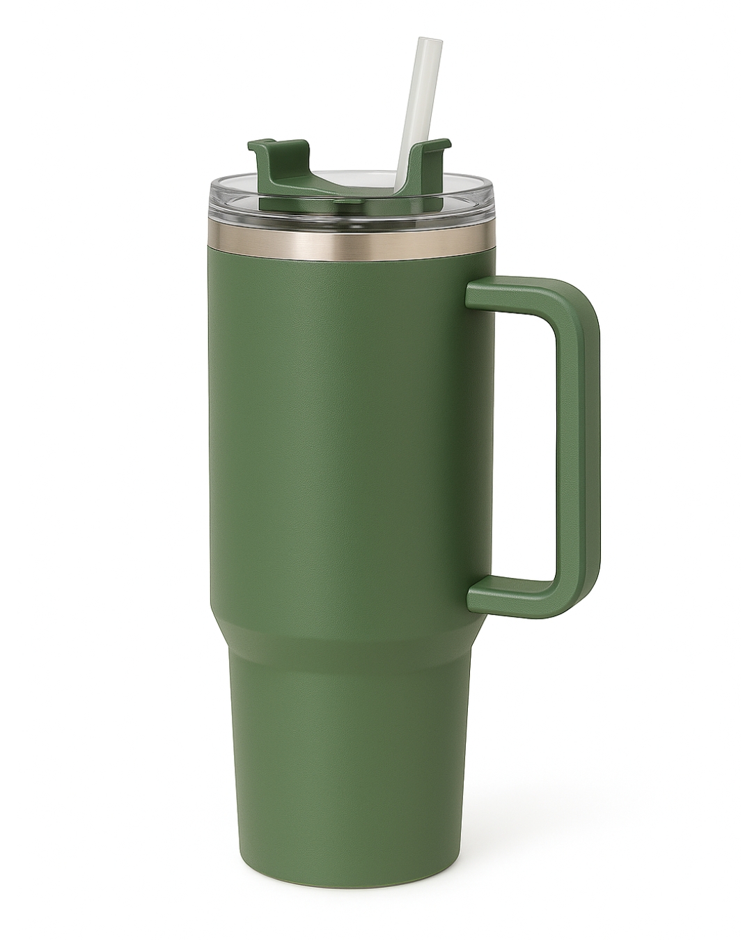 Mug térmico de gran capacidad (40 oz / 1200 mL) diseñado para mantener tus bebidas frías o calientes por hasta 24 horas. Fabricado en acero inoxidable 18/8 de alta calidad, libre de BPA, con tecnología de aislamiento de doble pared que asegura máxima eficiencia térmica. Incluye bombilla reutilizable y tapa transparente para ver el contenido con facilidad. Apto para lavavajillas y perfecto para viajes, oficina o uso diario.